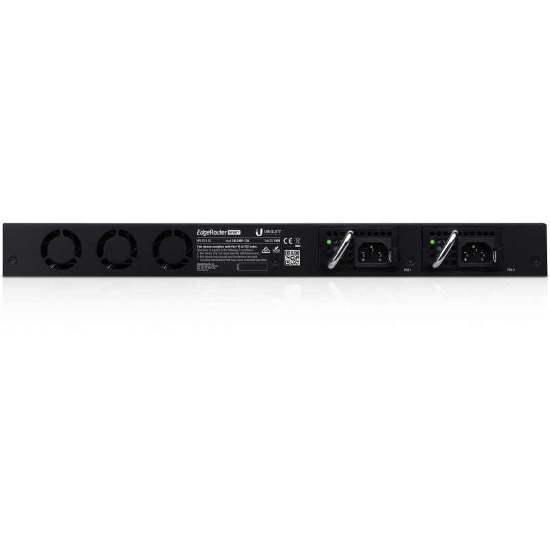 The EdgeRouter Infinity includes two AC/DC power modules – one for backup. An optional DC/DC power module is available for use with DC power.
