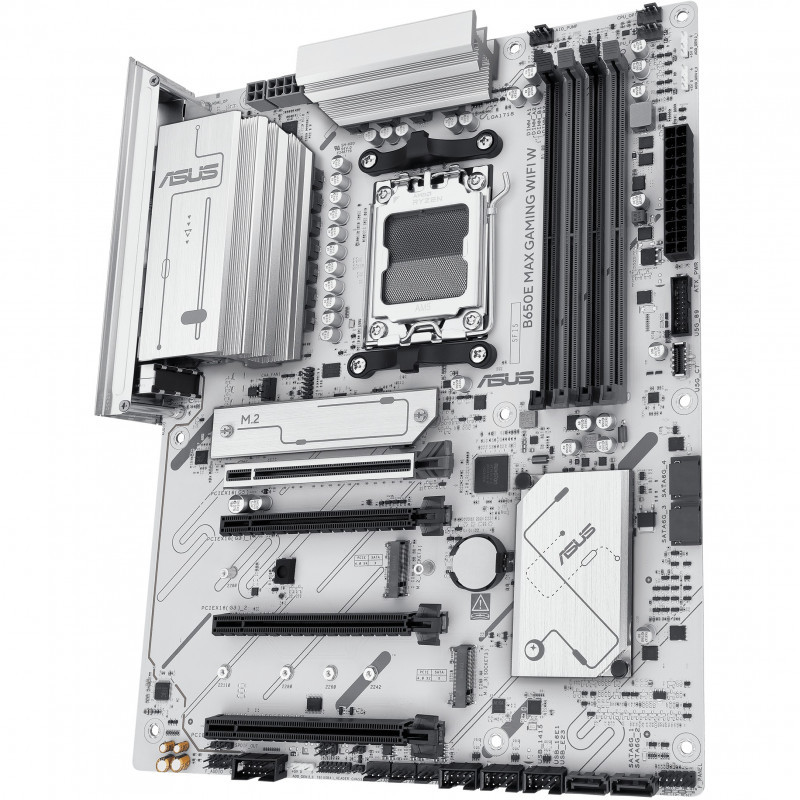 ASUS B650E series motherboards are expertly engineered to unleash the full potential of AMD Ryzen 9000 & 8000 & 7000 Series processors. Boasting a robust power design, comprehensive cooling solutions and intelligent tuning options, B650E MAX GAMING WIFI W provides users and PC DIY builders with a range of performance optimizations via intuitive software and firmware features. This platform delivers the power and connectivity that advanced AI PC applications demand.
