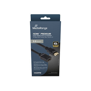 "MediaRange MRCS256. Cable length: 2 m, Connector 1: HDMI Type A (Standard), Connector 1 gender: Male, Connector 2: HDMI Type A (Standard), Connector 2 gender: Female, Connector contacts plating: Gold, HDMI version: 2.0, 3D, Data transfer rate: 18 Gbit/s, Audio Return Channel (ARC), Product colour: Black"\n"Seamless Connectivity for Every Setup