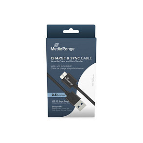 "MediaRange USB-A to Micro-B USB 3.0 Charge and Sync Cable, USB 3.0, 5 Gbps, 5W max., 50cm, Black. Cable length: 0.5 m. Connector 1: USB A, Connector 2: Micro-USB B, USB version: USB 3.2 Gen 1 (3.1 Gen 1), Maximum data transfer rate: 5 Gbit/s, Connector contacts plating: Gold, Product colour: Black"\n"Seamless Connectivity for Every Setup