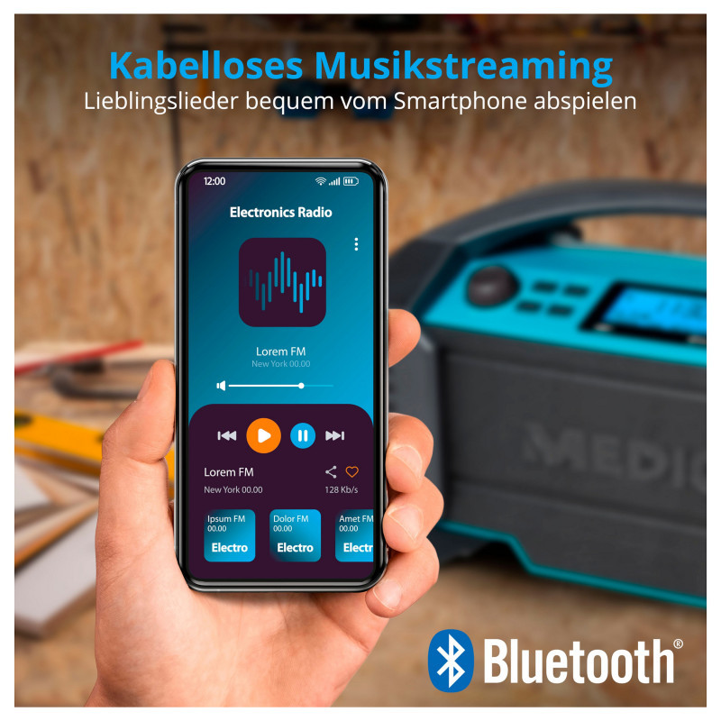 "MEDION LIFE E66050. Radio type: Worksite, Tuner type: Analog & digital, Supported radio bands: AM, DAB+, FM, MW. RMS rated power: 15 W. Display type: LCD, Backlight colour: Blue. Product colour: Black, Blue. Battery technology: Lithium-Ion (Li-Ion), Battery life (max): 15 h"\n
