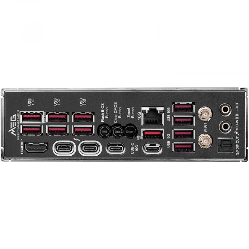 "MSI MEG Z890 ACE. Processor manufacturer: Intel, Processor socket: LGA 1851 (Socket V1), Compatible processor series: Intel Core Ultra (Series 2). Supported memory types: DDR5-SDRAM, Maximum internal memory: 256 GB, Memory slots type: DIMM. Supported storage drive interfaces: M.2, SATA III, Supported storage drive types: HDD & SSD, RAID levels: 0, 5, 10. Ethernet interface type: 10 Gigabit Ethernet, Top Wi-Fi standard: Wi-Fi 7 (802.11be), Wi-Fi standards: 802.11a, 802.11b, 802.11g, Wi-Fi 4 (802.11n), Wi-Fi 5 (802.11ac), Wi-Fi 6 (802.11ax), Wi-Fi 6E.... Component for: PC, Motherboard form factor: ATX, Motherboard chipset family: Intel"\n"MEG Z890 ACE