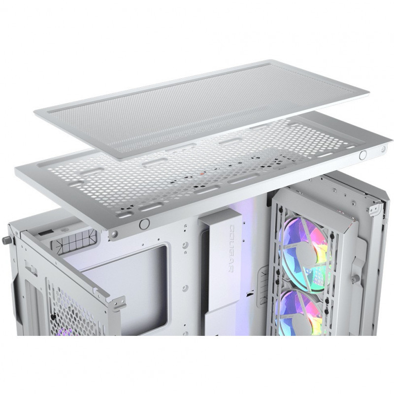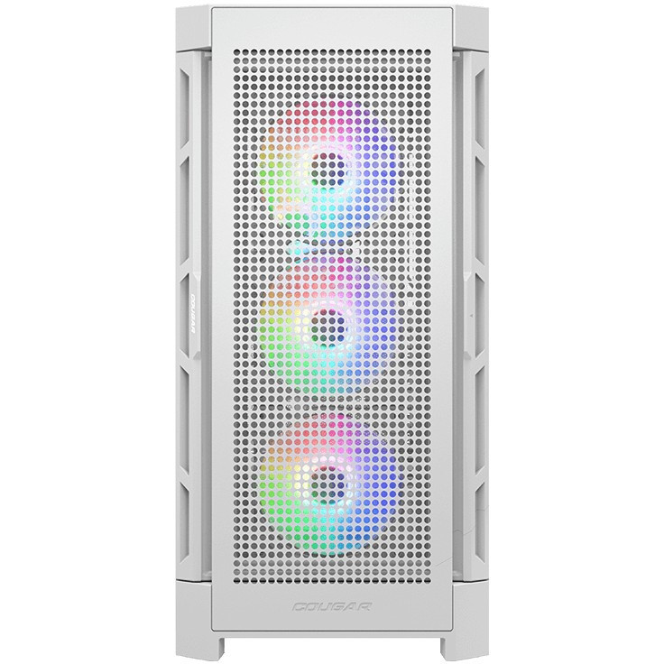"COUGAR Gaming Duoface Pro RGB. Form factor: Midi Tower, Type: PC, Product colour: White. Front fans installed: 3x 120 mm, Front fans diameters supported: 120,140 mm, Rear fans installed: 1x 120 mm. Supported HDD sizes: 2.5,3.5"". Width: 240 mm, Depth: 465 mm, Height: 496 mm. Package width: 313 mm, Package depth: 567 mm, Package height: 567 mm"\n"DUOFACE PRO RGB