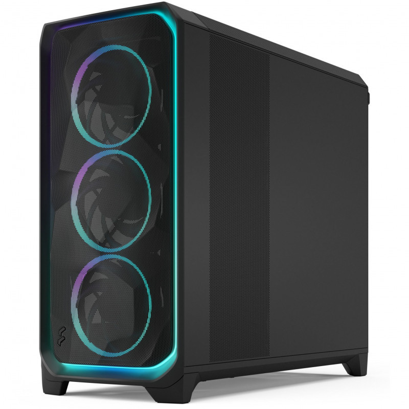 "Fractal Design Meshify 3 XL Ambience Pro RGB Black TG Light Tint. Type: PC, Product colour: Black, Supported motherboard form factors: ATX, EATX, ITX, micro ATX, SSI CEB, SSI EEB. Power supply location: Bottom, Supported power supply form factors: ATX. Front fans installed: 3x 140 mm, Front fans diameters supported: 120,140,180 mm, Side fans diameters supported: 140 mm. Supported HDD sizes: 2.5,3.5"", SSD form factor: 2.5"". Width: 245 mm, Depth: 575 mm, Height: 515 mm"\n"Experience advanced cooling and expressive, aerodynamic design in a spacious format. An evolution of our mesh performance series, Meshify 3 XL offers performance-boosting engineering upgrades, three powerful Momentum fans, and next-level atmospheric lighting in Ambience Pro RGB versions.