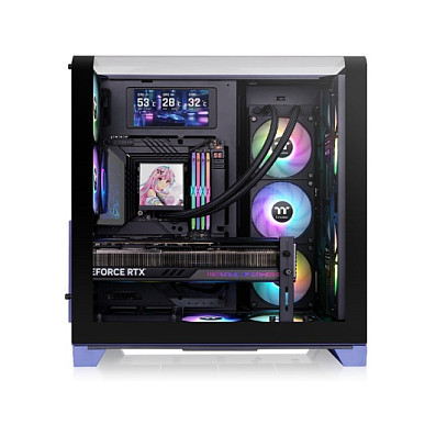 "Thermaltake CA-11F-00MNWN-00. Form factor: Midi Tower, Type: PC, Product colour: Blue. Supported power supply form factors: PS2. Front fans diameters supported: 120,140,200 mm, Side fans diameters supported: 120 mm, Rear fans installed: 2x 120 mm. Supported HDD sizes: 3.5"", SSD form factor: 2.5"". Width: 287 mm, Depth: 485 mm, Height: 503 mm"\n"The View 390 Air Future Dusk Mid Tower Chassis is an ATX case with a curved tempered glass side/top panel, a perforated front panel, rotational PCI-E slots, a GPU bracket and two CT120 rear fans. An optional 6"" LCD Screen Kit is available for enhanced visuals."