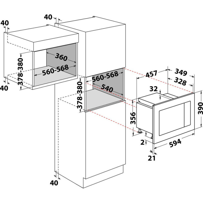 Whirlpool WMF200G NB Juoda Mikrobangų krosnelė su kepsninės funkcija Įmontuoti 20 L 800 W