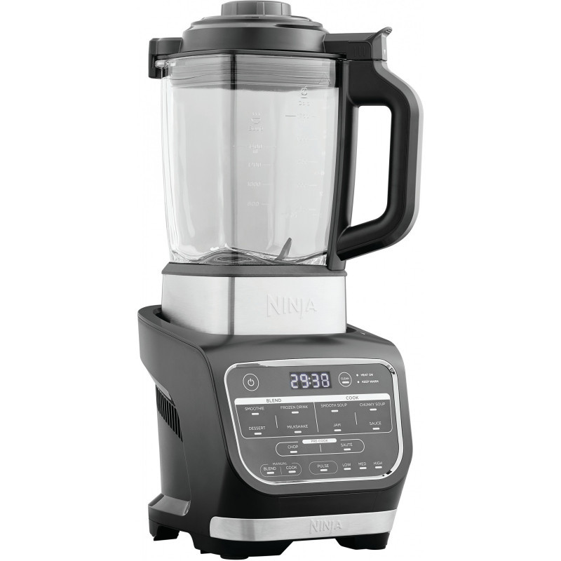 "Ninja HB150. Capacity: 1.7 L, Style: Blender style, Product colour: Black. Material: Plastic, Blade material: Stainless steel, Bowl material: Glass. Heating power: 800 W. Packaging content: 1.7L Glass Jug with Built-In Heating Element Jug Lid with Removable Centre Cap Tamper Cleaning Brush. Width: 200 mm, Depth: 220 mm, Height: 450 mm"\n