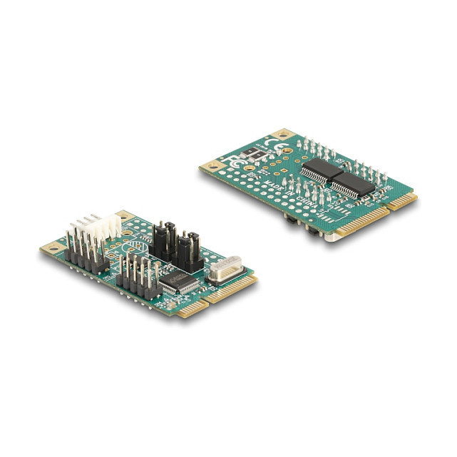 "DeLOCK 95276. Host interface: Mini PCI Express, Output interface: RS-232. Product colour: Green, Country of origin: China. Connector 1 gender: Male, Connector 1 form factor: Straight, FIFO (First In, First Out): 256 B. Windows operating systems supported: Windows 10, Windows 10 x64, Windows 11, Server operating systems supported: Windows Server 2022. Width: 30 mm, Depth: 51 mm, Height: 10 mm"\n"This Mini PCIe card by Delock expands your system by two additional RS-232 ports. This allows various serial devices like printer, POS systems and modems to be connected to the computer.