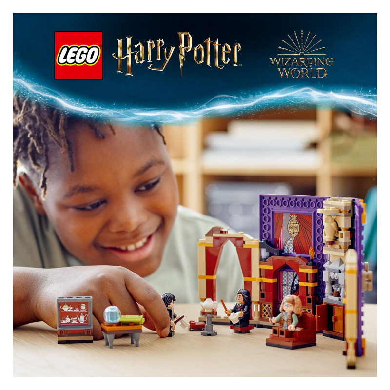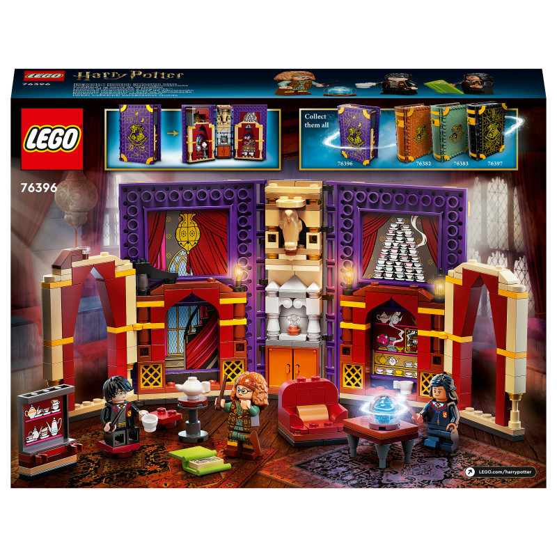 "LEGO Harry Potter Hogwarts™ Moment: Divination Class. Product type: Building set, Recommended age (min): 8 yr(s), Material: Plastic, Number of pieces: 297 pc(s). Package weight: 355 g"\n"LEGO® Harry Potter™ Hogwarts™ Moment: Divination Class (76396) is an instant playset inside a brick-built playbook packed with popular characters and familiar features from Professor Trelawney’s Divination classroom, for ages 8+.