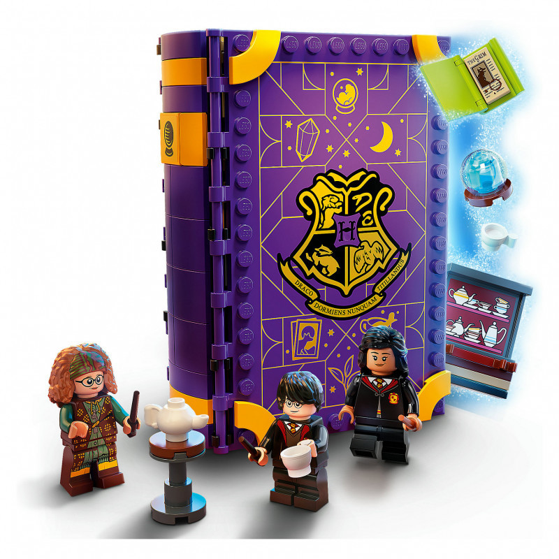 The LEGO playbook’s spellbinding cover unlocks to reveal a magical classroom full of adventures. There are 3 minifigures – Professor Trelawney, Harry Potter and Parvati Patil – plus lots of cool accessories. Some elements are built in, such as the storage cupboard, while others are detached, like the armchair, desk, chairs, crystal ball and teacups, which lift out to expand the play space. The set combines with others in the range and packs neatly into the closed playbook, so kids can carry it wherever they go and store it neatly until next time.