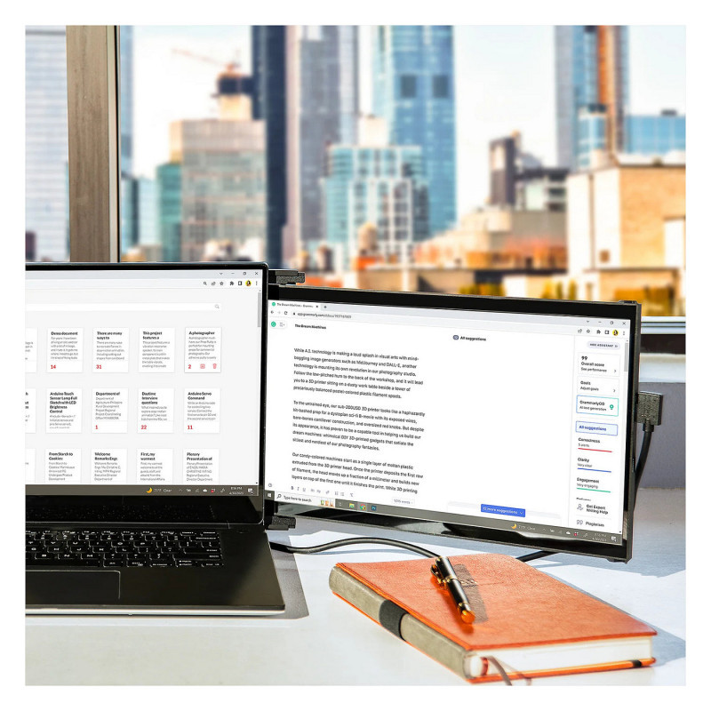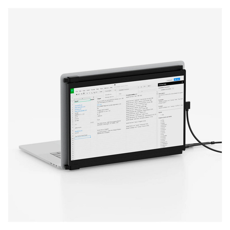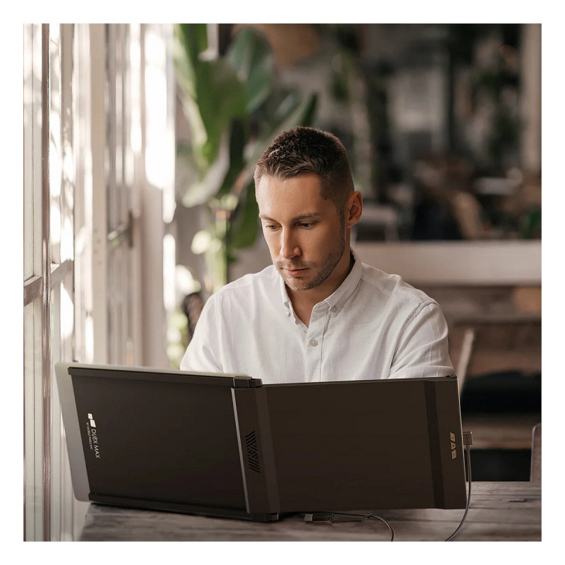 Duex Max DS is our most upgraded, portable dual-screen laptop accessory that makes multitasking effortless. To give laptop users a more perfect laptop dual screen user experience, this portable laptop monitor is 14.1"" large screen, 0.25"" at thinnest point , only 1.8lb lightweight for true mobility, and make you work faster while improving the quality of your work.
