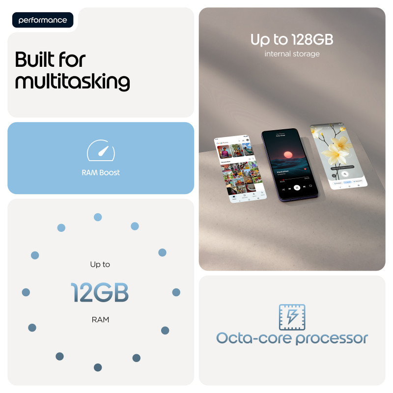 Introducing the moto g17, designed for those who create engaging content—and those who crave it. Capture brilliant shots from every angle and in any light with a 50MP Sony LYTIA™ 600 sensor(1), 5MP ultra-wide lens, and 32MP selfie cam(2). Create, edit, and multitask effortlessly with RAM Boost(3), tons of storage, and an octa-core processor. Power through your shoots and editing sessions with 55.8 hours of battery life(10) and fast TurboPower™ charging(8). Watch your favorite creators, reels, and videos on a sharp, vibrant 6.7""/6.72” Full HD+ display backed by stereo speakers and Dolby Atmos® sound. All this with a premium look-and-feel that’s built to last. The new moto g17 is a keeper in every way."