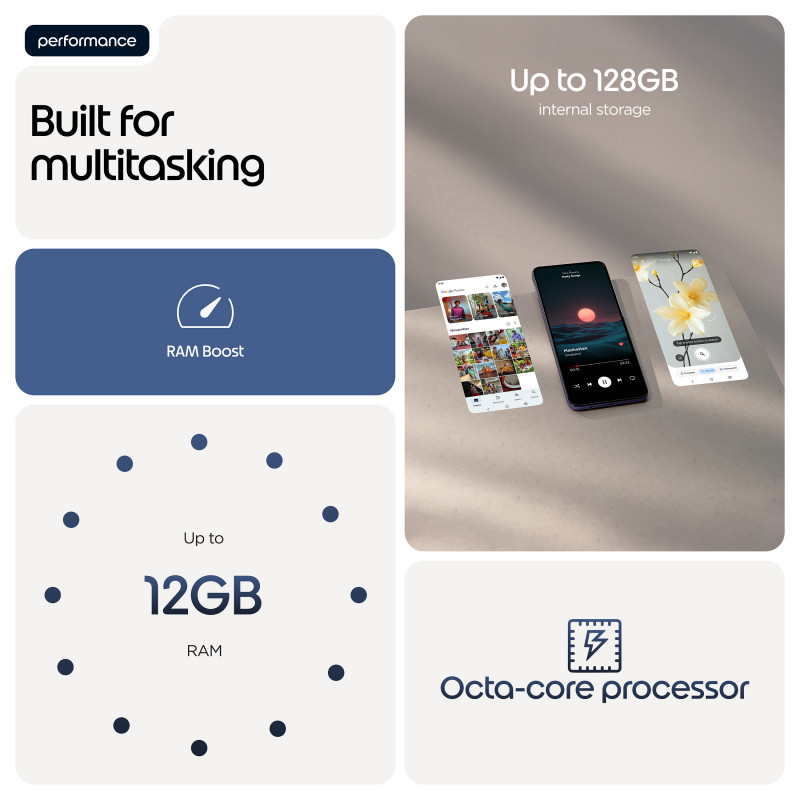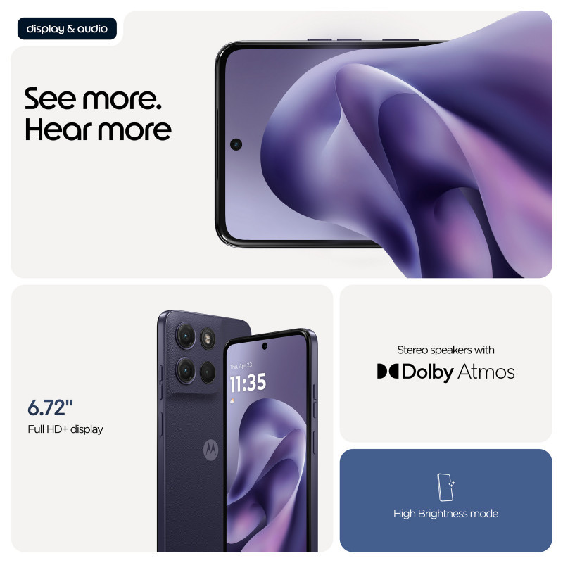 Introducing the moto g17, designed for those who create engaging content—and those who crave it. Capture brilliant shots from every angle and in any light with a 50MP Sony LYTIA™ 600 sensor(1), 5MP ultra-wide lens, and 32MP selfie cam(2). Create, edit, and multitask effortlessly with RAM Boost(3), tons of storage, and an octa-core processor. Power through your shoots and editing sessions with 55.8 hours of battery life(10) and fast TurboPower™ charging(8). Watch your favorite creators, reels, and videos on a sharp, vibrant 6.7""/6.72” Full HD+ display backed by stereo speakers and Dolby Atmos® sound. All this with a premium look-and-feel that’s built to last. The new moto g17 is a keeper in every way."
