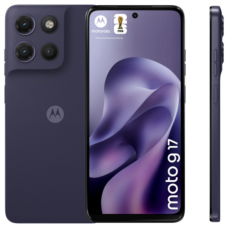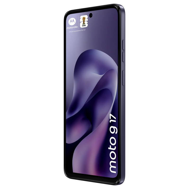 "Motorola moto g17 . Display diagonal: 17.1 cm (6.72""), Display resolution: 2400 x 1080 pixels. Processor frequency: 2 GHz, Processor family: MediaTek, Processor model: Helio G81 Extreme. RAM capacity: 4 GB, Internal storage capacity: 128 GB. Rear camera resolution (numeric): 50 MP, Rear camera type: Dual camera. SIM card capability: Dual SIM. Operating system installed: Android 15. Battery capacity: 5200 mAh. Product colour: Purple. Weight: 189.9 g"\n"Make every shot a keeper.