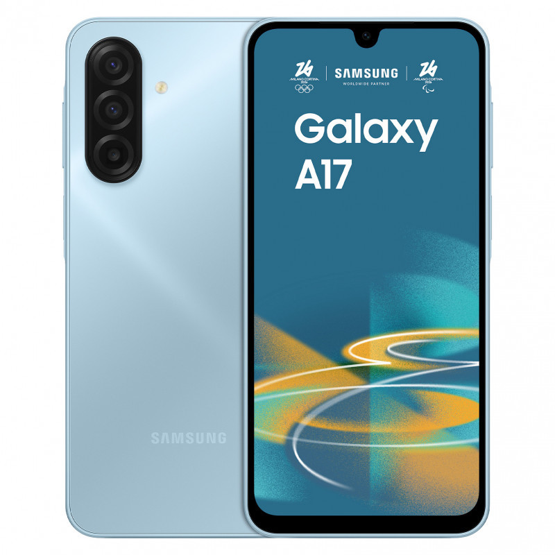 "Samsung Galaxy A17. Display diagonal: 17 cm (6.7""), Display resolution: 1080 x 2340 pixels. Processor family: MediaTek. RAM capacity: 8 GB, Internal storage capacity: 256 GB. Rear camera resolution (numeric): 50 MP, Rear camera type: Triple camera. SIM card capability: Hybrid Dual SIM. Battery capacity: 5000 mAh. Product colour: Light Blue. Weight: 190 g"\n