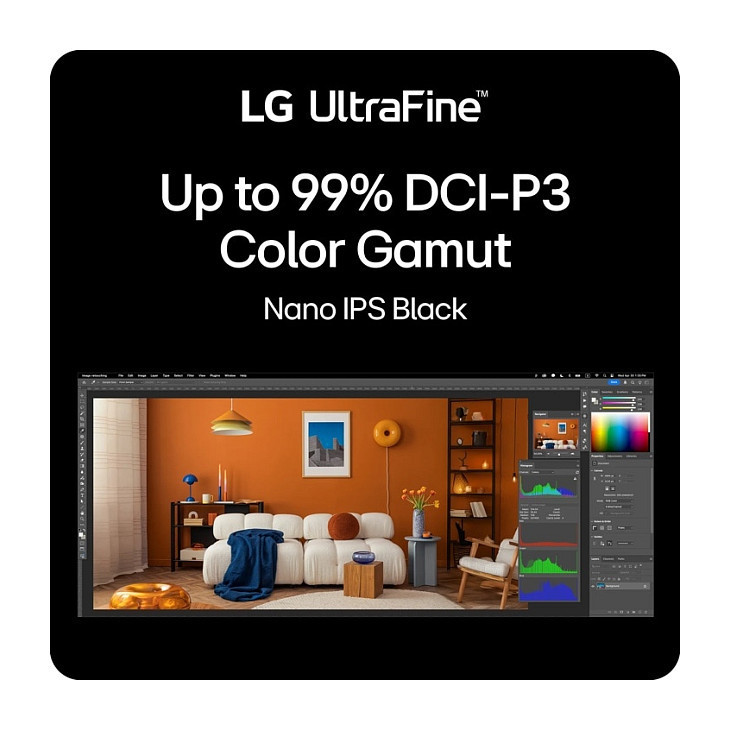 The 5K2K (5120x2160) Nano IPS Black display offers 33% more pixels than standard 4K UHD, delivering ultra-wide resolution, vivid color, and razor-sharp detail—creating a spacious, precise workspace ideal for video editing, graphic design, photography, and color-critical tasks.