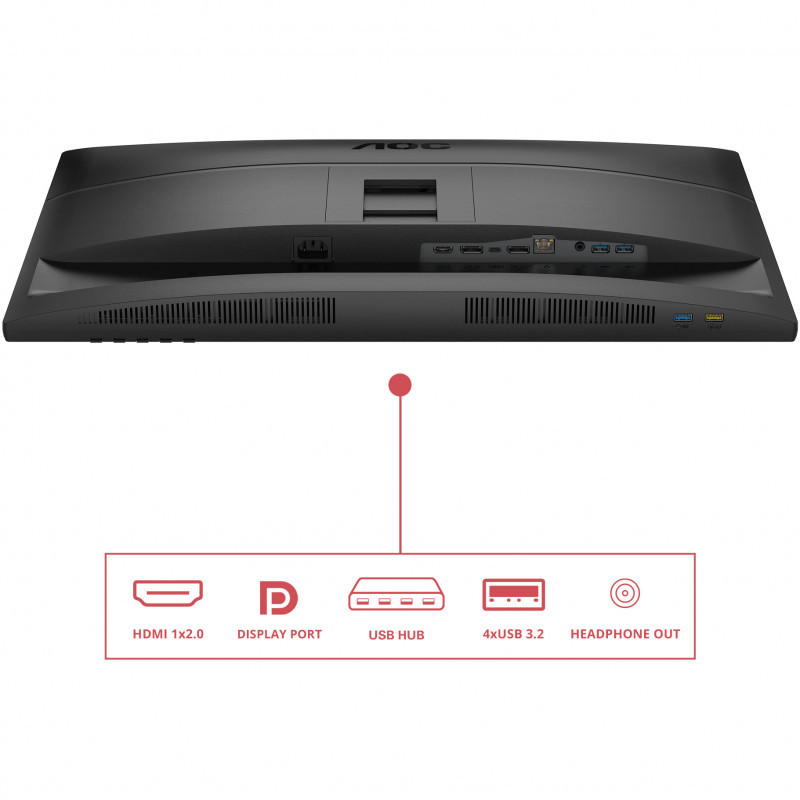 "AOC E4 Q27E4CV. Display diagonal: 68.6 cm (27""), Display resolution: 2560 x 1440 pixels, HD type: Quad HD, Display technology: LED, Response time: 4 ms, Native aspect ratio: 16:9, Viewing angle, horizontal: 178°, Viewing angle, vertical: 178°. Built-in speaker(s). Built-in USB hub, USB hub version: 2.0 / 3.2 Gen 1 (3.1 Gen 1). VESA mounting, Height adjustment. Product colour: Black"\n"Optimize your workflow with the Q27E4CV 27"" QHD monitor