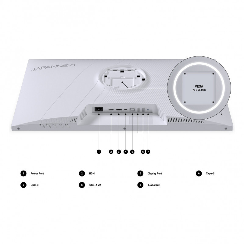 "JAPANNEXT JN-IPS270WQHD75F-C65W-HSP-W. Display diagonal: 68.6 cm (27""), Display resolution: 2560 x 1440 pixels, HD type: Quad HD, Display technology: LED, Response time: 8 ms, Native aspect ratio: 16:9, Viewing angle, horizontal: 178°, Viewing angle, vertical: 178°. Built-in speaker(s). VESA mounting, Height adjustment. Product colour: White"\n
