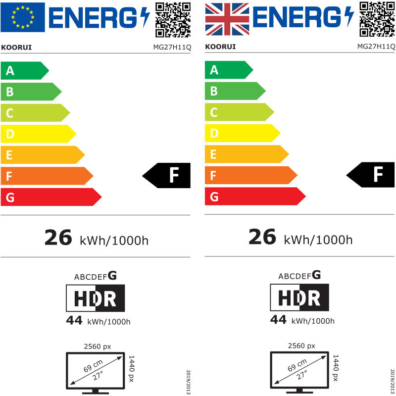 "Koorui G2721P. Display diagonal: 68.6 cm (27""), Display resolution: 2560 x 1440 pixels, HD type: Quad HD, Response time: 1 ms, Native aspect ratio: 16:9, Viewing angle, horizontal: 178°, Viewing angle, vertical: 178°. VESA mounting. Product colour: Black"\n