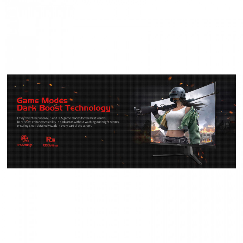 "Koorui G3221SC. Display diagonal: 80 cm (31.5""), Display resolution: 2560 x 1440 pixels, HD type: Quad HD, Response time: 1 ms, Native aspect ratio: 16:9, Viewing angle, horizontal: 178°, Viewing angle, vertical: 178°. VESA mounting. Product colour: Black"\n