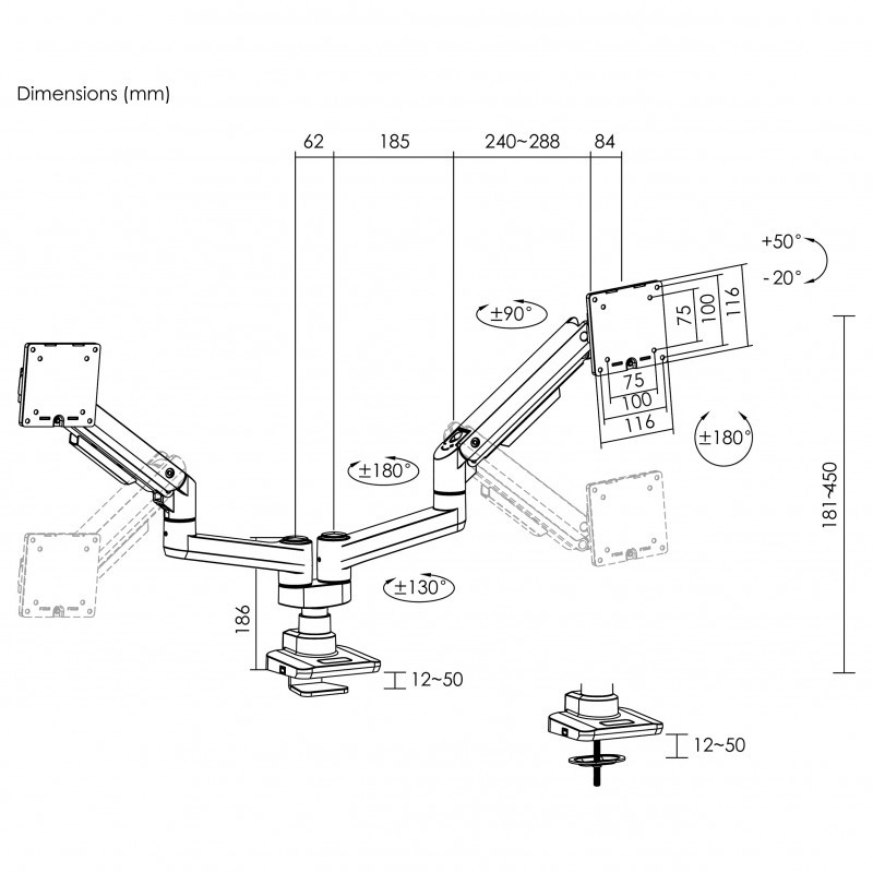 Equip Befestigungskit (Gelenkarm) - für 2 LCD-Displays/ Curved LCD-Displays - schwerlast - Kunststof