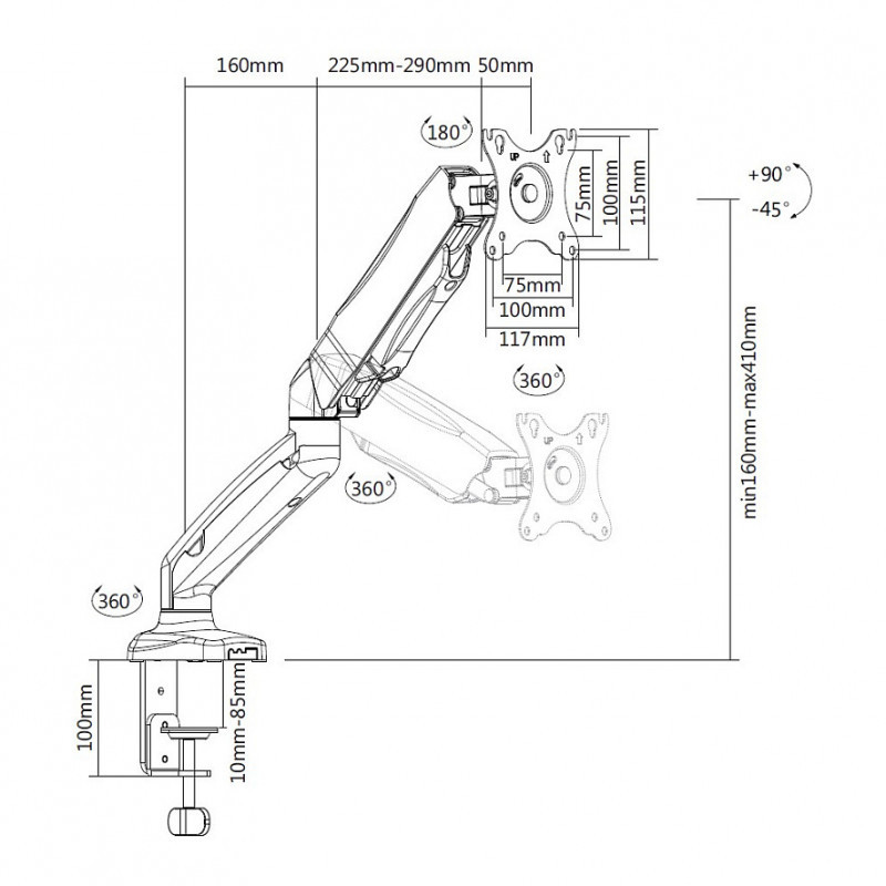 equip Tischhalterung 17" bis 32" / 9kg 1TFT 360 Gasfeder