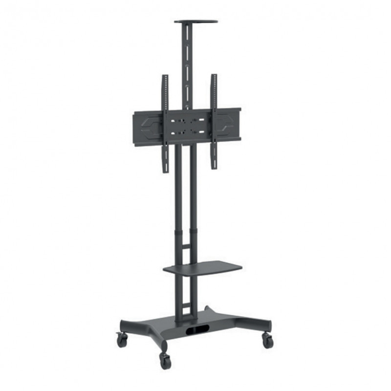 Neomounts' floor stand, NS-M3800BLACK holds your TV, AV equipment and even hides your cables. The casters allow the stand to move it to where you need it. Easily roll this cart through doorways and over thresholds. The trolley features four solid castor wheels, of which the two front wheels are equipped with a brake. The floor stand also comes with four leveling feet.