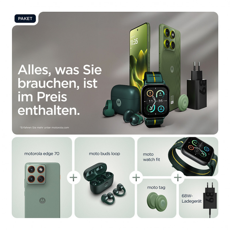 "Motorola edge 70 . Display diagonal: 17 cm (6.7""), Display resolution: 2712 x 1220 pixels. Processor family: Qualcomm Snapdragon, Processor model: 7 Gen 4. RAM capacity: 12 GB, RAM type: LPDDR5X, Internal storage capacity: 512 GB. Rear camera resolution (numeric): 50 MP, Rear camera type: Dual camera. SIM card capability: Dual SIM. Operating system installed: Android 16.0. Battery capacity: 4800 mAh. Product colour: Green. Weight: 159 g"\n"What’s your edge?
