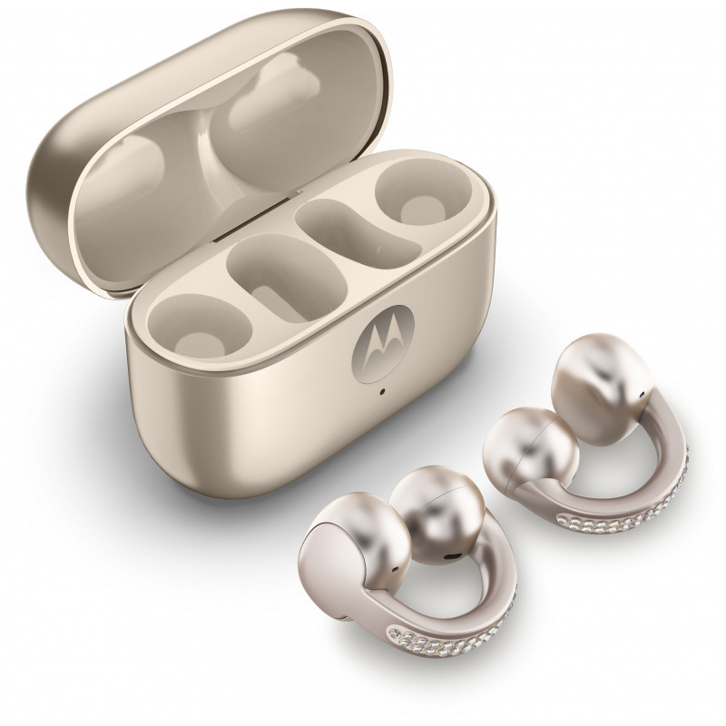 Introducing moto buds loop, sleek and lightweight earbuds designed to elevate your audio experience while keeping you connected to the world around you. With an open-ear design, moto buds loop delivers the aesthetic you want while providing the all-day comfort you crave. Stay in control of your busy day without missing a beat when paired with devices powered by moto ai.(1) Listen with unbelievable clarity and balance thanks to Sound by Bose. Experience crystal-clear calls with an advanced microphone system. And keep it all protected thanks to premium materials and a water-repellent design.(2) With up to 8 hours of nonstop battery(3) and plenty more in the case, you have all the power you need. moto buds loop is always in tune with you.
