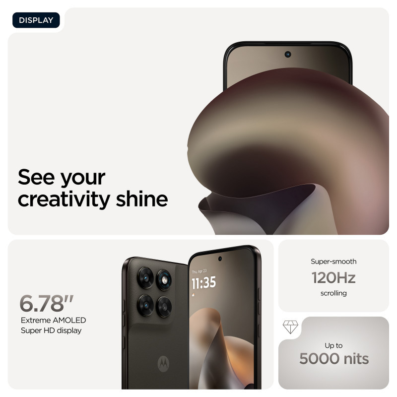 Whether you’re capturing golden-hour selfies, binge-watching your favorite series, or exploring the outdoors, the latest moto g family is built to keep up. Enjoy stunning detail and smooth scrolling on a vivid display that makes everything look better. Capture every moment with an AI-powered camera system that delivers brilliant shots in any light. And count on reliable durability that stands up to drops, spills, and extreme temperatures. Motorola brings you the next generation of exceptional moto g devices—moto g67, moto g77, and moto g87 —so you can choose the perfect fit for your lifestyle."