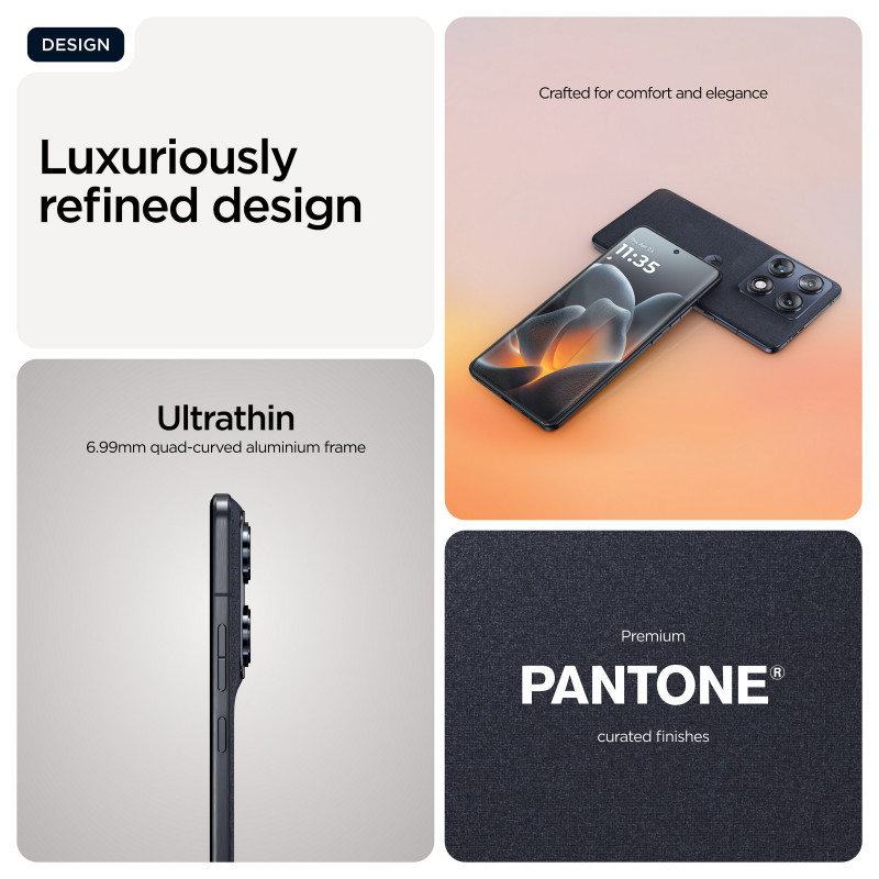 Introducing the all-new motorola signature series, a purposeful combination of technology and design—and a true reflection of Motorola’s DNA. It starts with contoured edges and an ultrathin profile crafted to form the most sophisticated of silhouettes, while using aluminum throughout the frame for added elegance and durability. Combined with unique finishes and materials, the result is a sensory experience unlike any other. Inside, motorola signature devices offer the ultimate in performance, recognized by DXOMARK Gold Label for the highest standards of imaging excellence. Engineered with Sony LYTIA™ sensors, Dolby Vision® recording, and the next gen Snapdragon® 8 Gen 5 processor, you have all the power you need to capture moments like never before. With up to seven years of OS and security updates and exclusive concierge services, your entire experience is elevated.(1) Expect the best from motorola signature."