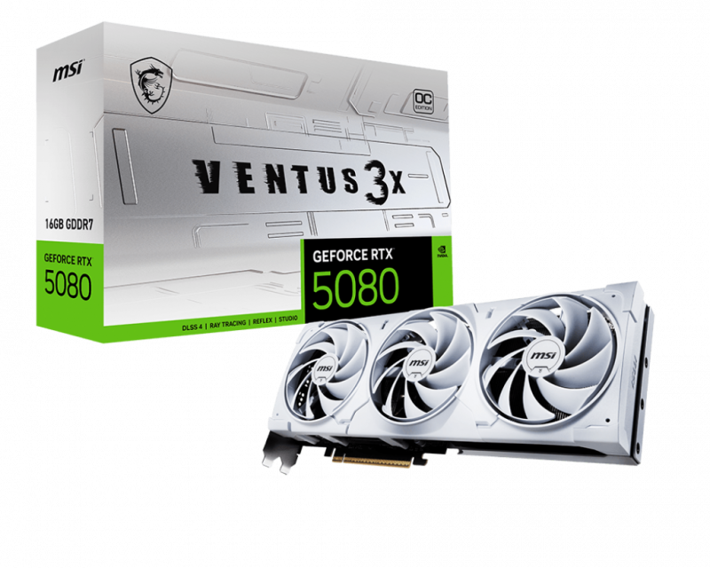 MSI GeForce RTX 5080 16G VENTUS 3X OC WHITE | NVIDIA | 16 GB | GeForce RTX 5080 | GDDR7 | HDMI ports quantity 1 | PCI Express Gen 5
