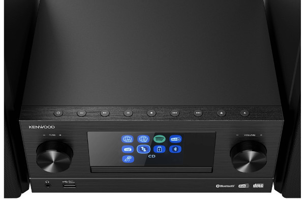 KENWOOD M-9000S-B ne tik muzikinis centras, bet ir maža Hi-Fi garso sistema Jūsų namuose. Puikiai skambantis „M-9000S-B“ leidžia transliuoti muziką naudojant „Bluetooth“ belaidæ technologiją arba naudojant „Wi-Fi“ iš interneto, kad galėtumėte mėgautis „Spotify Connect“ ir integruotu „Podcast-Player“. Be to, galite klausytis mėgstamų dainų iš USB, CD ir per DAB+ arba FM radiją.