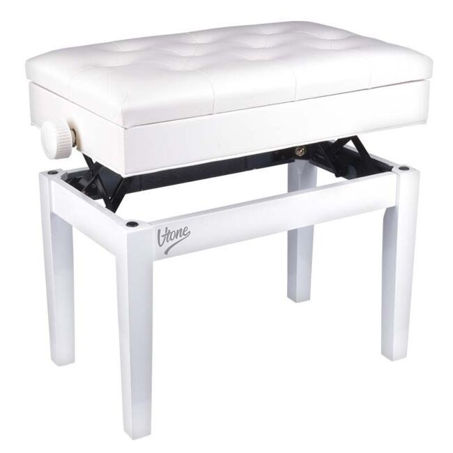 Muzikos instrumentas V-TONE ŁAWA 2 WH - fortepijono suoliukas su daiktų laikymo skyriumi ir aukščio reguliavimu, baltas