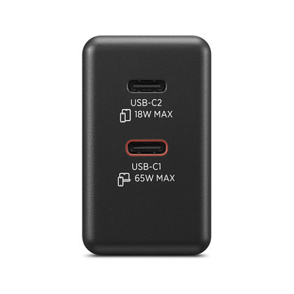 "Lenovo 40AW065BEU. Purpose: Universal, Power supply type: Indoor/outdoor, Input voltage: 100 - 240 V. Product colour: Black. Certification: ANATEL, AZ COC, BIS, BSMI, CCC, CE/IES, CMIM, EAC, ECAS, LVE+RoHS, GCC, KC, MOE, NRCs+SABS, RCM,.... Cable length: 1.5 m, Width: 50 mm, Depth: 30 mm. Package width: 120 mm, Package depth: 120 mm, Package height: 35 mm"\n"The Lenovo Dual USB-C 65W GaN Charger is the ultimate portable & lightweight dual-device charging product for PC and more devices for users"