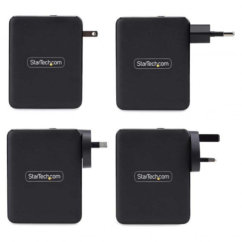 "StarTech.com 140W USB-C Wall Charger, 3x USB-C/1x USB-A, PD 3.1 International GaN Power Adapter for MacBook/Dell XPS/Inspiron. Charger type: Indoor, Power source type: AC, Charger compatibility: Universal. Input voltage: 100 - 240 V, Maximum output voltage: 28 V. USB Type-C ports quantity: 3, Fast charging, Power protection features: Over current, Over voltage, Overheating. Product colour: Black"\n"Power and charge your laptop and USB devices with this 140W Power Delivery 3.1 wall charger