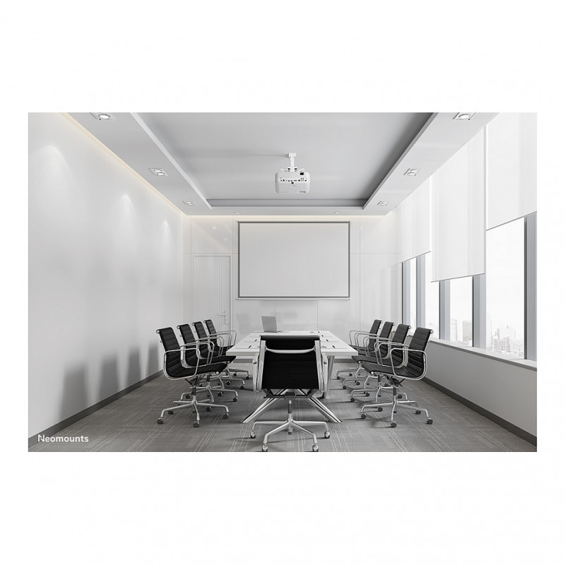 "Neomounts CL25-530WH1 Beamer ceiling mount - h 25,5 cm - easy-install - full motion. Mounting type: Ceiling, Maximum weight capacity: 45 kg, Product colour: White. Width: 470 mm, Height: 255 mm, Depth: 470 mm. Country of origin: China. Quantity per pack: 1 pc(s), Products per master (outer) case: 6 pc(s), Master (outer) case net weight: 15.3 kg. Package net weight: 3.3 kg"\n"The Neomounts CL25-530WH1 is a universal projector ceiling mount. Because of the high weight capacity up to 45 kg and the various adjustment options, this projector ceiling mount is widely applicable. The CL25-530WH1 has four extendable arms and the versatile tilt (+20°, -20°), rotate (360°) and swivel (+8°, -8°) technology, provides optimal placement of the projection on any canvas, screen or wall.