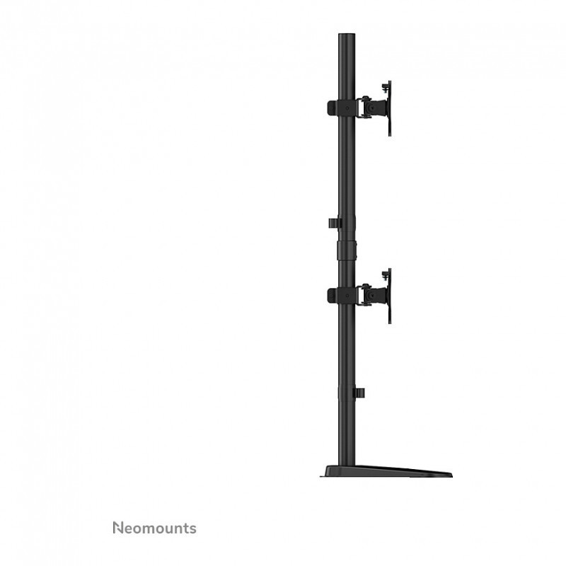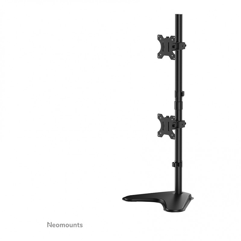 "Neomounts FPMA-D550DDVBLACK Monitor stand 10-32"" - vertical installation. Mounting: Freestanding, Maximum weight capacity: 6 kg, Minimum screen size: 25.4 cm (10""), Maximum screen size: 81.3 cm (32""), Minimum VESA mount: 75 x 75 mm, Maximum VESA mount: 100 x 100 mm. Height adjustment, Swivel angle range: 0 - 180°, Tilt angle range: 0 - 90°. Product colour: Black"\n"The Neomounts desk mount, model FPMA-D550DDVBLACK is a tilt-, swivel and rotatable desk mount for 2 flat screens up to 32"". This mount is a great choice for placement on desks using a desk stand.