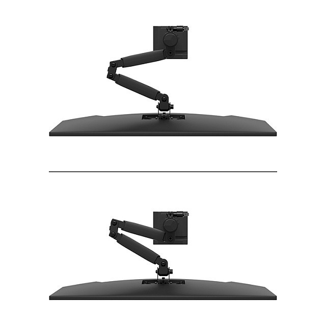 The NERO monitor arm features manual height and depth adjustment, allowing you to adjust your workspace completely to your liking. In addition, the clever 180° stop mechanism prevents the mount from making contact with the wall or separation panel when installed near it. The welded base guarantees optimal stability and sturdiness. The practical cable management system ensures neat routing of cables. In addition, the base of the DS60-600BL1 provides a convenient space to place a phone, for a tidy desk.