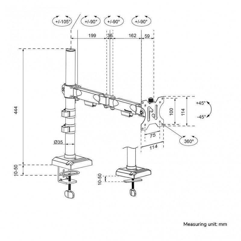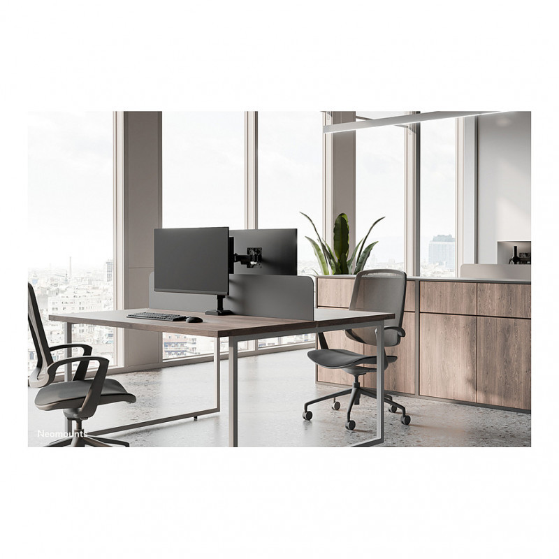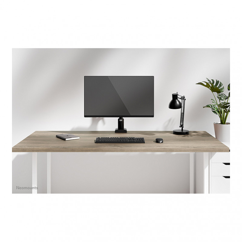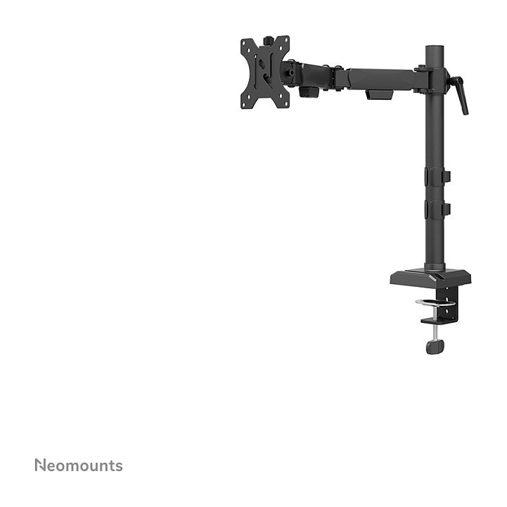 "Neomounts DS60-600BL1 Monitor arm 10-32"" - Quick-fix - 180°-stop. Mounting: Clamp/Grommet, Maximum weight capacity: 8 kg, Minimum screen size: 25.4 cm (10""), Maximum screen size: 81.3 cm (32""), Minimum VESA mount: 75 x 75 mm, Maximum VESA mount: 100 x 100 mm. Height adjustment, Swivel angle range: -90 - 90°, Tilt angle range: -45 - 45°. Product colour: Black"\n"The Neomounts DS60-600BL1 NERO monitor arm is the perfect choice for those looking for a sturdy and versatile solution for monitors up to 32"" with a weight capacity of 8 kg. This full motion monitor arm offers maximum flexibility thanks to its versatile tilt (90°), rotate (360°) and swivel (180°) technology, enabling you to always find the optimal viewing angle for an ergonomic working posture.
