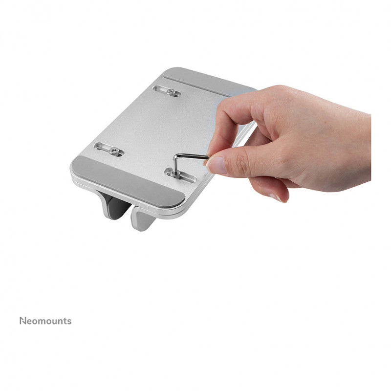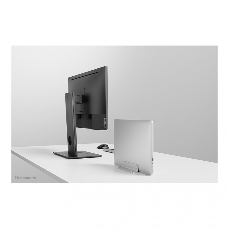 "Neomounts NSLS300SILVER Laptop holder 11-17"" - universal. Product type: Laptop stand, Product colour: Silver, Material: Aluminium. Height adjustment range: 0 - 42 mm, Width adjustment range: 0 - 150 mm, Depth adjustment range: 0 - 92 mm. Width: 150 mm, Depth: 92 mm, Height: 42 mm. Package width: 15 mm, Package depth: 250 mm, Package height: 370 mm. Master (outer) case width: 270 mm, Master (outer) case length: 320 mm, Master (outer) case height: 340 mm"\n"The Neomounts NSLS300SILVER is a vertical stand for laptops from 11"" up to 17"". The holder is width adjustable, making it universally applicable. The solid aluminium design ensures secure positioning of the laptop. The NSLS300SILVER is a smart space-saving solution for any desk."