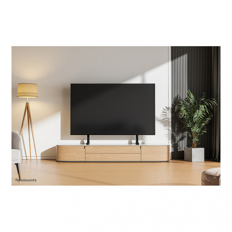 "Neomounts DS45-430BL18 TV stand 45-90"". Maximum weight capacity: 60 kg, Minimum screen size: 114.3 cm (45""), Maximum screen size: 2.29 m (90""), Minimum VESA mount: 200 x 200 mm, Maximum VESA mount: 800 x 400 mm. Height adjustment range: 0 - 100 mm. Product colour: Black"\n"The Neomounts DS45-430BL18 is a TV desk stand for screens up to 90"" with a weight capacity of 60 kg. The TV stand can be adjusted in height for the optimum viewing position.