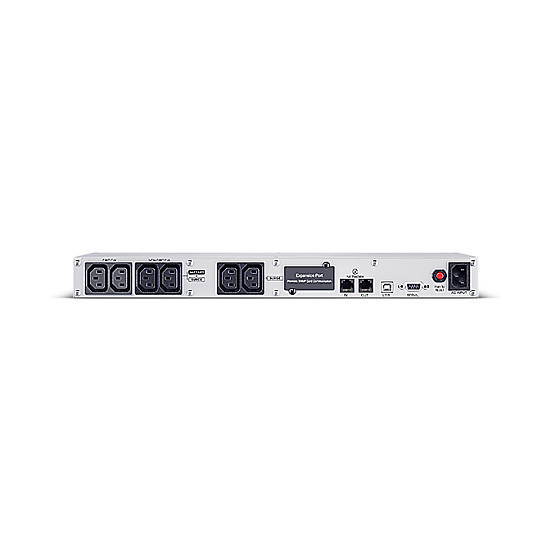 "CyberPower CP700EIPFCRM1U. UPS topology: Line-Interactive, Output power capacity: 0.7 kVA, Output power: 420 W. AC outlet types: C13 coupler, Power plug: C14 coupler, AC outlets quantity: 6 AC outlet(s). Battery technology: Sealed Lead Acid (VRLA), Typical backup time at full load: 2 min, Typical backup time at half load: 9.6 min. Form factor: Rackmount, Product colour: Black, Silver, Housing material: Metal. Compliance certificates: CE, RoHS"\n