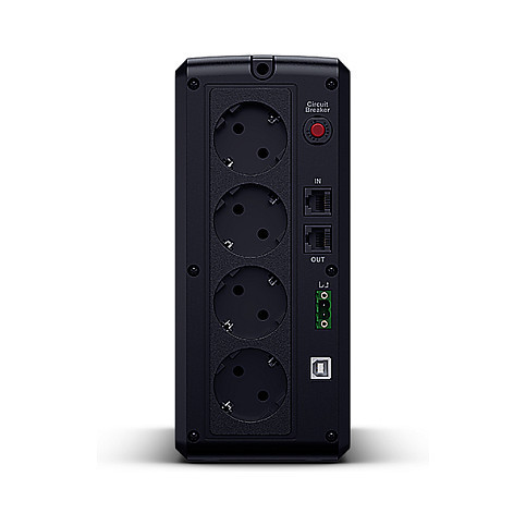 "CyberPower UT1200EG. UPS topology: Line-Interactive, Output power capacity: 1.2 kVA, Output power: 700 W. AC outlet types: Type F, AC outlets quantity: 4 AC outlet(s), USB port type: USB Type-B. Battery technology: Sealed Lead Acid (VRLA), Typical backup time at full load: 6 min, Typical backup time at half load: 48 min. Form factor: Tower, Product colour: Black, Housing material: Plastic. Compliance certificates: CE, RoHS, Certification: CE, EAC"\n"UT1200EG