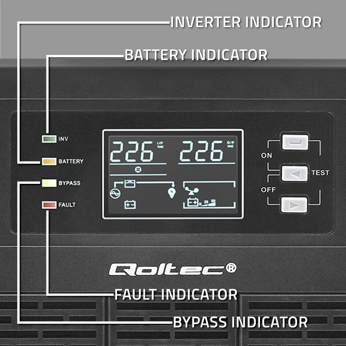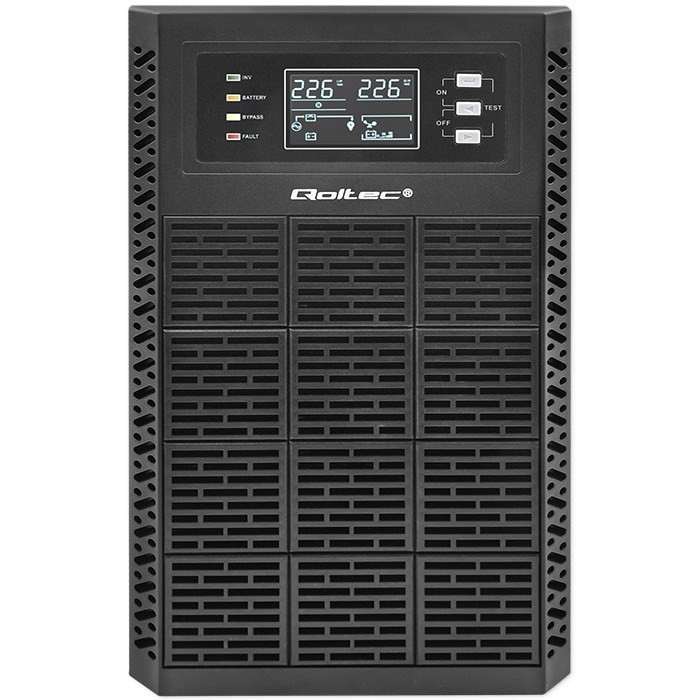 Qoltec 52282 Nepertraukiamo maitinimo šaltinis (UPS) | 3 kVA | 3000 W | Galios koeficientas 1.0 | LCD | EPO | USB | Prisijungęs