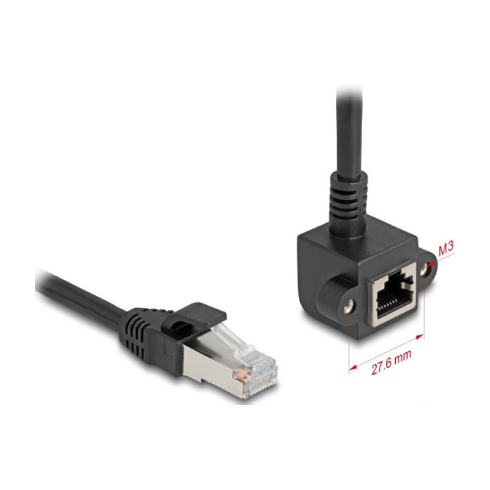 "DeLOCK 81040. Cable length: 0.25 m, Cable standard: Cat6, Cable shielding: F/UTP (FTP), Connector 1: RJ-45, Connector 2: RJ-45, Product colour: Black"\n"Description