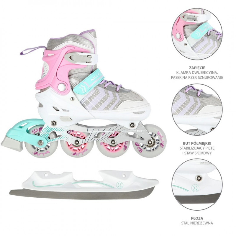 Nils Extreme NH18192 4W1 riedučiai su keičiamomis pačiūžomis, M dydžio, rožinės spalvos