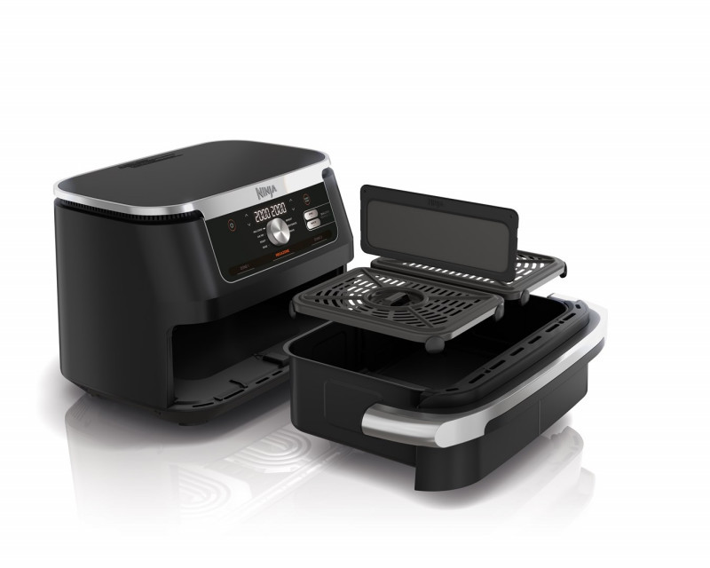 Ninja AF500EU gruzdintuvė Dvigubas 10,4 L Autonominės 2470 W Karšto oro gruzdintuvė Juoda, Nerūdijančiojo plieno