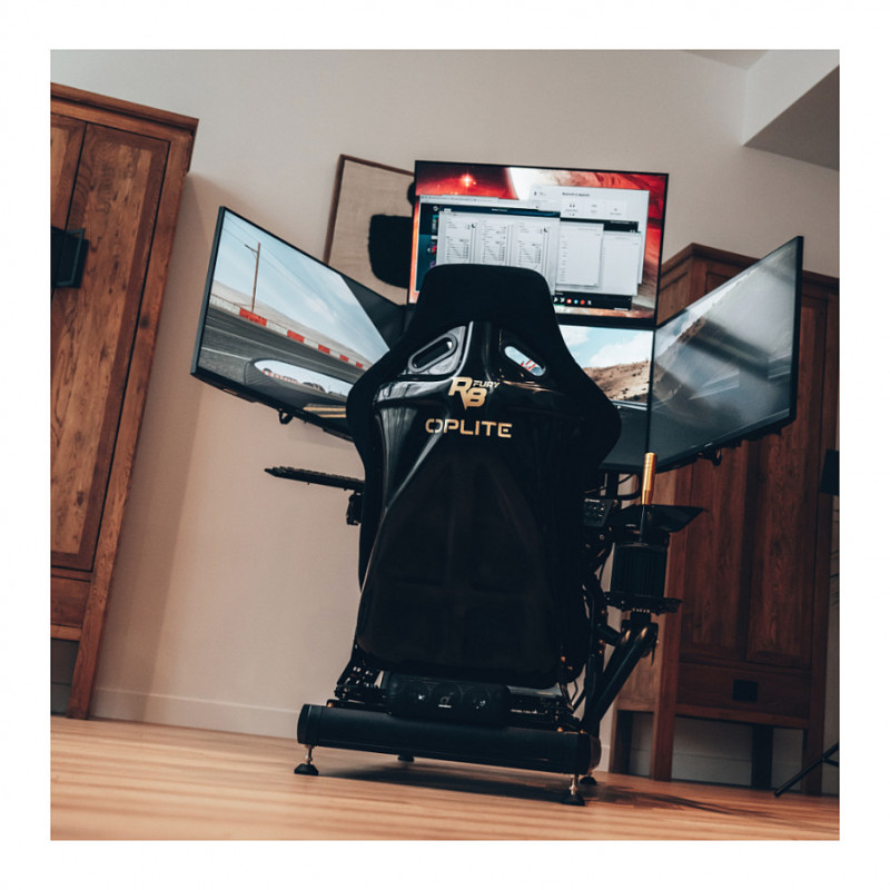 For even deeper immersion, it’s ideal to have the technical data (DATA) from your simulations displayed on a separate monitor. The R8 On Top Monitor Mount allows you to mount a second or fourth screen above your main monitor (or your 3 screens). Made from Ø 35mm E355 steel with 2mm thickness, our monitor mount features a highly rigid structure while offering an elegant design and multiple adjustment possibilities."
