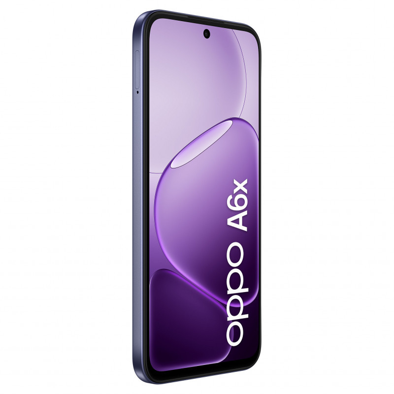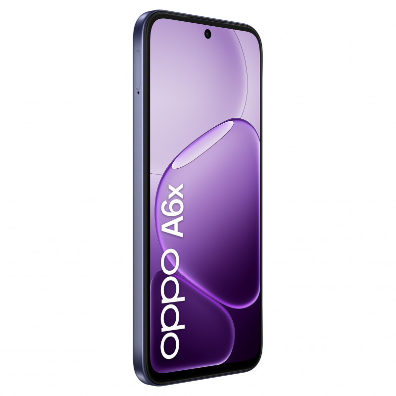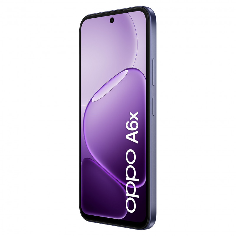 "OPPO A6x. Display diagonal: 17.1 cm (6.75""), Display resolution: 1570 x 720 pixels. Processor family: Snapdragon, Processor model: 685. RAM capacity: 4 GB, RAM type: LPDDR4X, Internal storage capacity: 128 GB. Rear camera resolution (numeric): 13 MP, Rear camera type: Dual camera. SIM card capability: Dual SIM. Operating system installed: Android 15. Battery capacity: 6100 mAh. Product colour: Purple. Weight: 205 g"\n